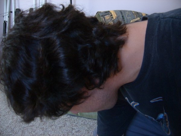 If you're talking about my update, my neck is comparatively short, so my hair would touch my collar faster than someone with a long neck, say, David N.