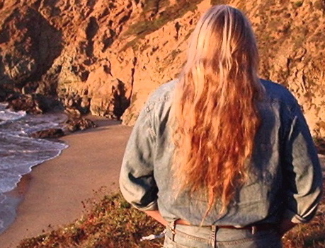 This pic was taken in the late fall of '07. You can see that the natural "V"-shape of my mane in back more or less comes to a point just around my belt-line (where the longest hairs actually touch my belt).