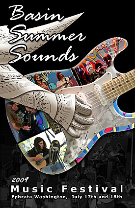 Hey Jarvis! and and thanks for the nice comments about the poster! It is one of my favorites. I have done a lot more posters that are more graphical then photo like this one. All the photo's are ones I took and the sheet music is scanned sheet music from a friend. All the bands are local except one that is Curtis Salgado's band who has worked with Santana. There is also someone people might recognize if they look real close. This year we had Smash Mouth as our final band of the weekend. This has been one of my more popular posters. Thanks again Steve