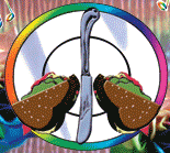Had lunch today in a little deli/diner over in Leonardtown (a small town in southern Maryland). This place goes by the name of the Do Dah Deli, and their logo is a peace sign, with the upright made from a table knife, and the two downward diagonals each made from a half-sandwich. The doors have signs saying "Hippies Always Welcome" and "Deadheads Always Welcome" the staff all wear tye-died t-shirts, and the back wall of the dining area has a large painting as a tribute to San Francisco and Jerry Garcia.