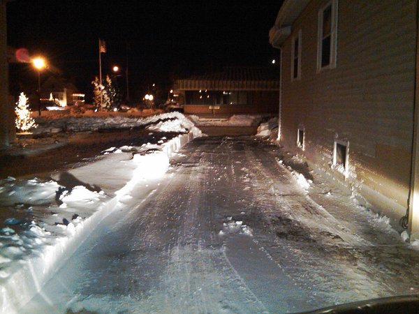 In the photo looking down my drive to the street. I was 3 hours with combination snow thrower and shovel. The snow was wet heavy snow, what we call heart attack snow and the snow blower wouldn't eat through the ridge at the end.