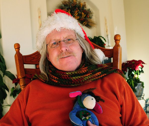 Great holiday picture, Walter. Eeyore is a good stand-in for a reindeer too. And, I really like the inset architectural features on the fireplace in the background.