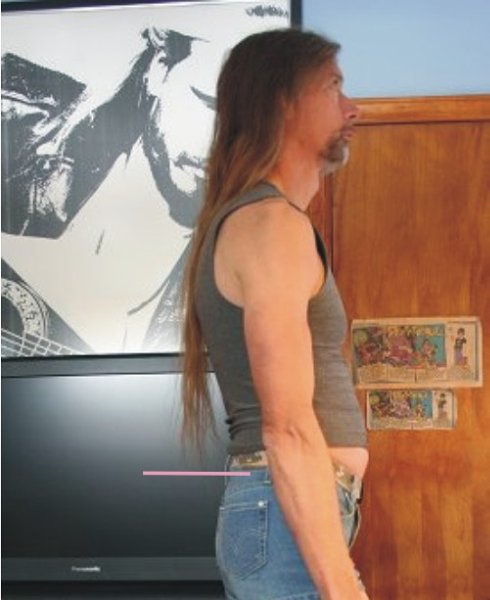Some of you probably might not remember but last year I posted a pic on December 20th showing my hair length at that time and now I'm going to post the same type of pic just over a year later taken today.In this pic taken in 2008 Scott thoughtfully made a hash mark showing exactly where my hair ended then.So now this is the ultimate comparison and I'll let you all make the call.
