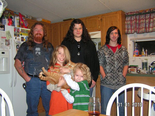Here's me, him, my two oldest boys and my nephew (in that order, for those who don't know us) at my house down here in "Hillbilly Hell".