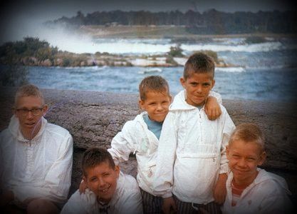 Most of you I bet can probably guess which one of these 5 boys is myself; but just to remove the guesswork: I'm the blonde on the far right. My older brother (who is long deceased now) is on the far left. The 3 cute darker-haired kids in the middle are my step-bothers. I'm smiling NOT because of the mandatory summer buzzcut my father always gave us; but because of the fact that the year before my dad married my step-mom, instantly giving me 3 great younger brothers to share in my crewcut misery!