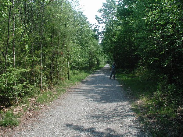 The railroad is now gone. I remember walking along its tracks thirty years ago. It had no passenger service by then, but Larry remembers it going to Boston in the 1950s. The photo above shows me on the rail line just south of town in 2005. It is now a trail. A cyclist we talked to said it was being connected to a trail system that would eventually go all the way into Boston. If the rest of the trail were like this segment, you would never get there. The mosquitoes long before then would have sucked you dry.