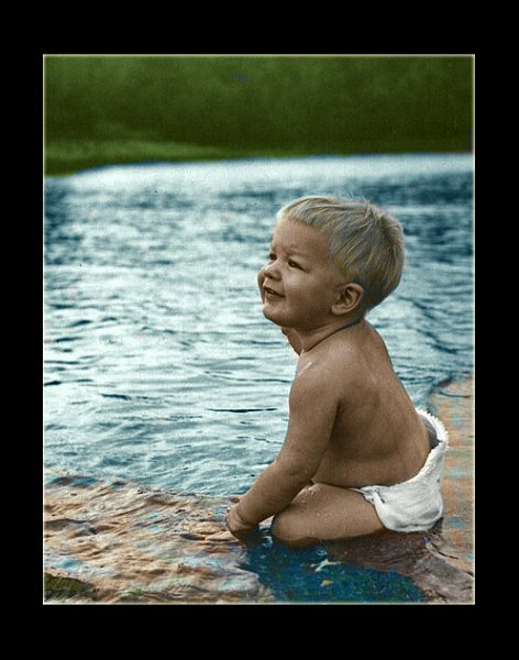 Thought you guys might get a laugh out of this one I just discovered in the garage today. (The original paper print now all yellow and faded.) So, got my "Crayolas" sharpened and here is Justin in 1949 in Jaffrey New Hampshire colourized. Hair CAN change through the years. Mine was white when I was little. OMG.........where has the time gone! :-) Well, at least my mother wasn't giving me buzz-cuts even then.