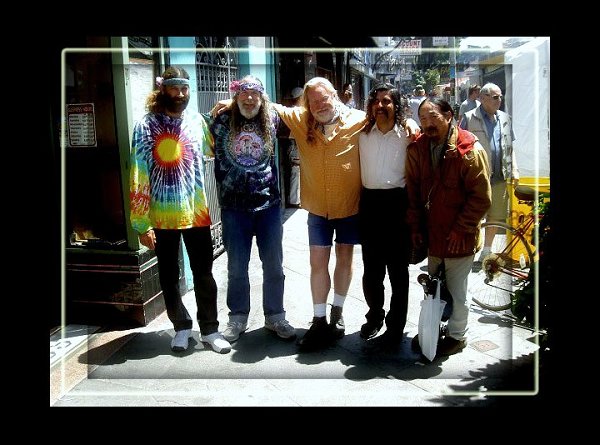 "Im a tourist from Ohio" (a total lie, by the way -- I've not only lived in San Francisco for well over 30 years; I also am originally from Illinois, NOT Ohio!), "I was wondering if I could take your picture, since I'm trying to photograph all the longhairs here in San Francisco -- may I?"