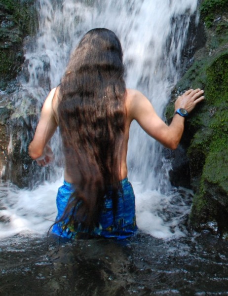 WOW! O.K. you win, hands down for the most incredible long hair I have ever seen on a guy. Your hair looks full, thick and really well taken care of. The scenery is also awesome. I've seen several incredible water falls in Hawaii and Japan and felt inspired by their beauty. Your hair and the water cascading down make for a great picture.