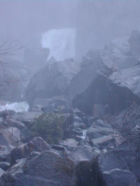 Most of the mist is from the upper falls...the picture is from the end of the trail/falls viewpoint...there is it like standing in heavy driving rail with strong wind. Certainly you don't want to go near the water, which is very cold and fast moving.
