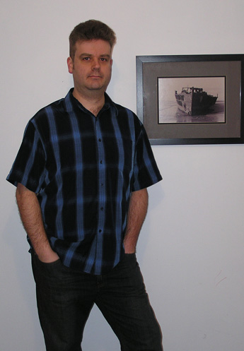 Taken July 21 2009... Bit long on top for a slight head start, pardon the pun.. although I am almost smiling?!?! The pic in the background is of a Wreck called The Maheno on Fraser Island of Queensland, if anyone's interested..
