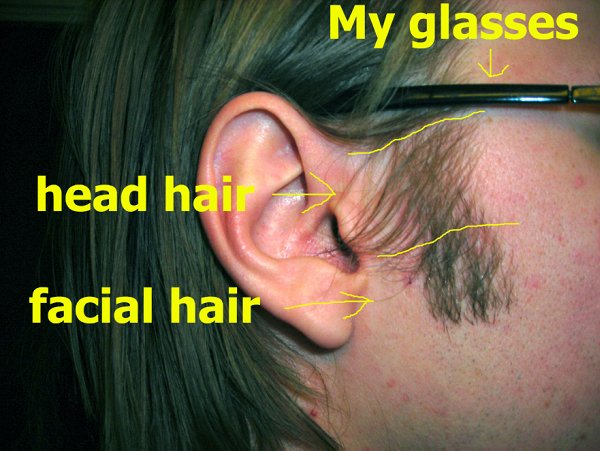 I have this "head-hair" in front of ears under my glasses (see pic) right before my sideburns-hair starts. My glasses cant hold this bit back... and It seems to grow slower than the rest of my hair.