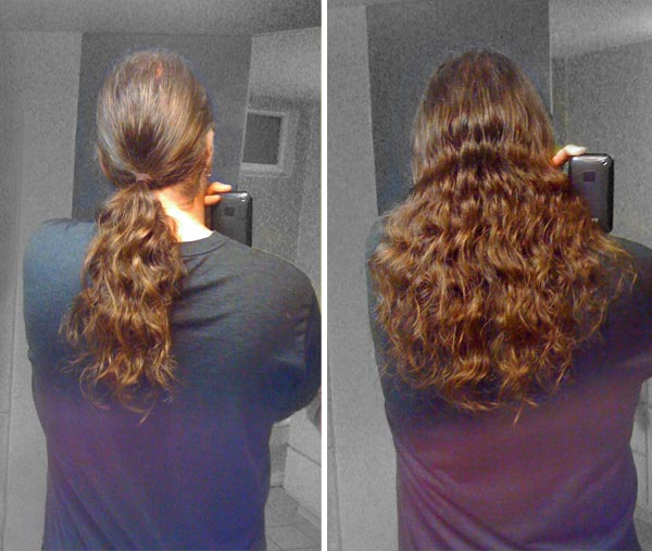 Brad inspired me to take some photos of the back of my head! LOL I wear my hair in a tail at work but let it loose at home, so here are a couple photos with my phone. Been doing a lot of sking lately, the hair works great keeping my neck warm! Hope everybody is doing well!