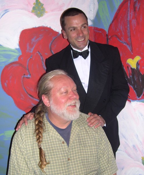 Well, Mark, although this pic is pretty damn UNflattering of myself in my opinion, it at least shows my friend Christopher & I together (attending an AIDS benefit dance up in Ukiah a few years ago).... Although he looks good in a buzzcut (not to also mention the tux), I much prefer seeing him w/ more hair on his head!
