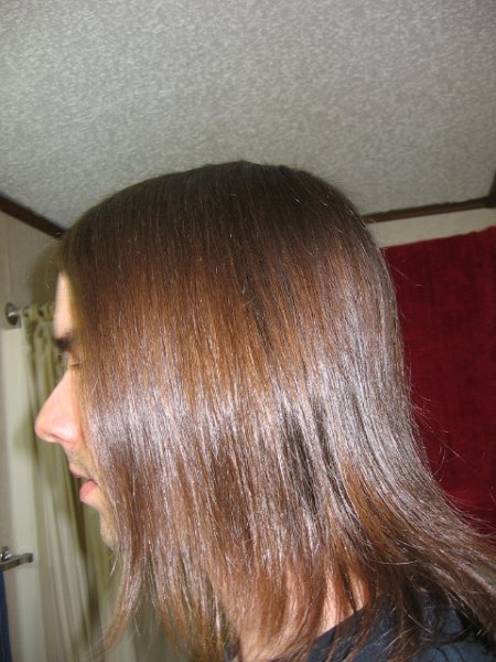 Here is a photo from the back. Hair is still a bit wet from showering.