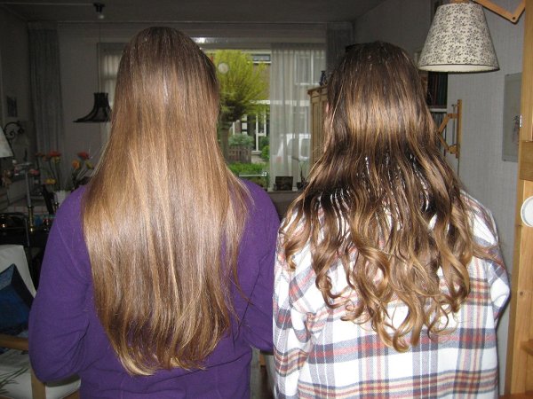 When I started growing my hair, my sister was inspired to grow out her shoulder lenght hair as well. 32 months later we decided to take a comparison picture, I tried to match my sisters height but I was a bit to low.