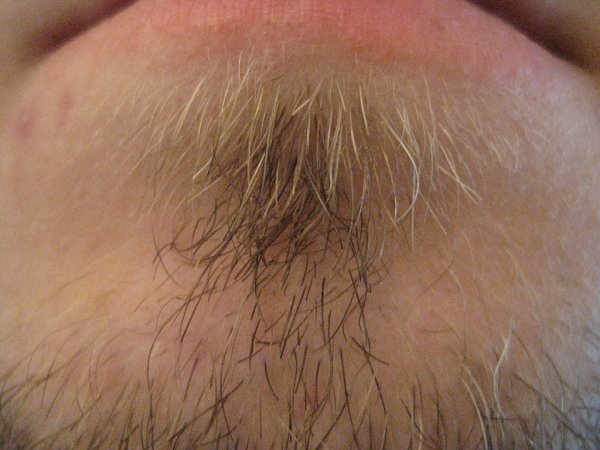 Pretty much every man who doesn't have black hair has those weird pale-blond hairs right under their lower lip.