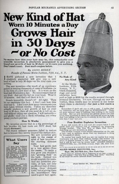 I love the popular mechanics magazine ads from the early days. I inherited my great grandfathers collection so i have em from the mid 20s till about 85. Some of the ads will really crack you up.