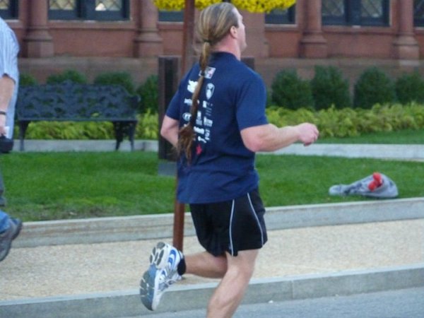 I recently just ran the Marine Corps Marathon in Washington D.C. on Sunday. I ran my best race and got 3:06:31, which is under the 3:10 time I needed to qualify for the Boston Marathon. I'm really happy with my time and just thought I'd share with you guys since I know there are a few other runners on the board. Also I'm overdue for my 5 year update, so here's a picture from the race where you can really see my hair. I'll try to get on top of things with some real pictures soon.