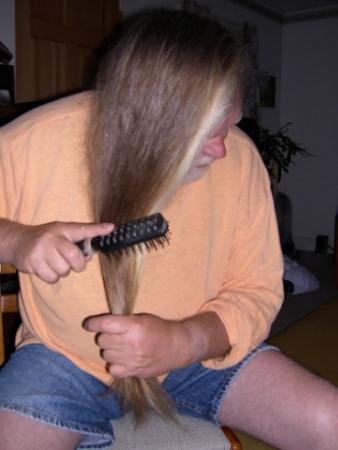 Another extremely important thing to know is: always start by brushing your ends, first; then gradually work your way up towards the hair closer to your scalp. Eventually you should be able to brush the full length of your mane, from scalp to ends in long smooth strokes -- but again, I only do this when my hair is completely dry.