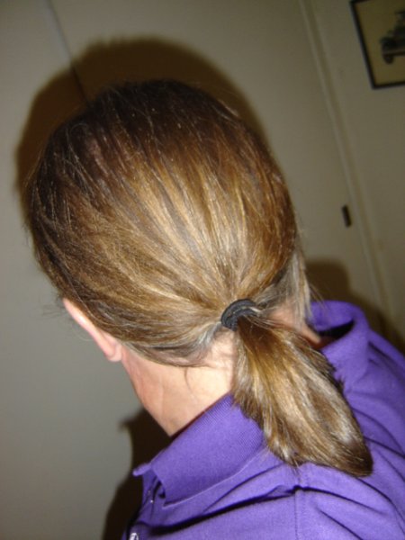 Well, Tomorrow I cross a threshold. I will pull my hair back and wear a tail to work. It is getting longer, amd I wanted to wait a bit before doing so. However, my hair, though straight, is thick and is refusing to stay behind my ears. Therefore I will pull back what can be held into a tail situated slightly higher than I will finally wear one. This is to gather all the hairs I can. Those not long enough...yet, I will use a light spritzing. and maybe pins (if needed and I buy some) Wish me luck, I haven't worn a tail to work in 30 years.