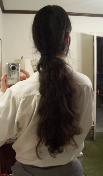 Anyway, here's a photo of my ponytail as of today! Enjoy! I'm 31 years old and have been growing my hair from just above shoulder length for 8 1/2 years. This is my hair tied back in its natural state. I did not comb it.