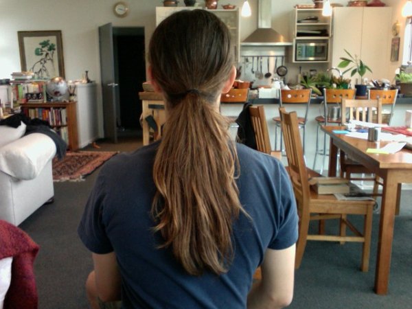 Just a new pic of my current ponytail length. These days I almost always wear it in a tail.