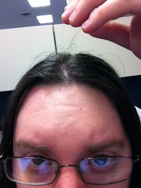 A bit back I posted a picture of the front most part of my hair, which seemed to be shorter than the rest. It wasn't a good picture so I took two more today (one with my hair up, one down) to try to better show what it looks like. Attached here is the first, and I will do a self-reply to post the second. Is my hair breaking at the front, and is it natural for it to be this short in the front? my hair can fit nicely into a medium-high ponytail, but i still have, what appears to me at least to be, a lot of really short hairs sticking out all over the place. Is that natural as well? Thanks!