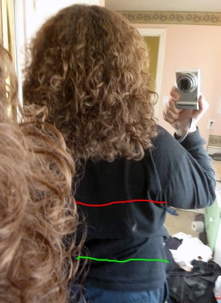Again the top line shows the minimum length I want my hair to be, and the bottom line shows what I think will be the maximum length I'll let it get to.