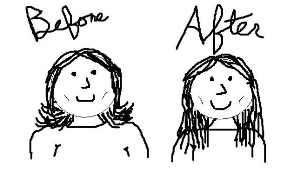 I apologize for the double-post, I just realized that my previous comment might be taken the wrong way and I didn't mean it that way! I think that long curly hair is awesome, I didn't mean curly hair texture, just the way it was bobbing up at that specific length (I think it was deflecting off my shoulders or something, haha). I made up a crude illustration in MS Paint just now to show what I'm talking about, with a comparison to how it is now (more or less). Happy trails.