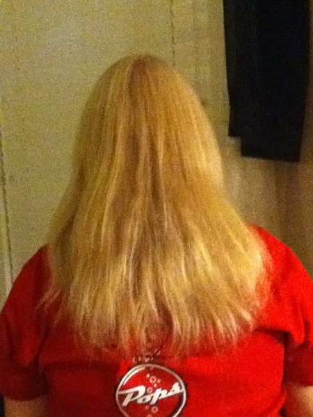 My hair hits me just at the bottom of my shoulder blades. This is the first shot showing the length from the back that I've been able to post.
