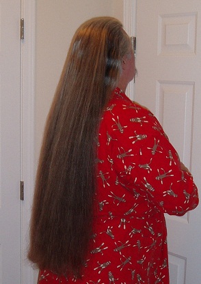 In my last post on this board, I commented that my hair had reached the "tushie milestone". I've finally gotten some decent photos to share with you.