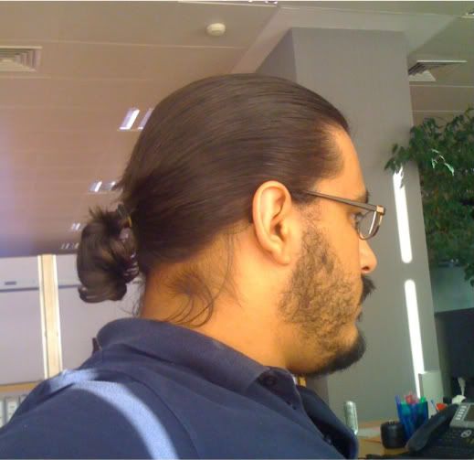 Looking good, mate! Your ponytail has a pretty curl to it, and itd be cool to see what it looks like when its down. ^_^ What a stepping stone, though! :D I can only imagine what its like. Ive had longer hair that tickled my bare back while shirtless in between school years, and it feels great! Wait till you get to braid length and a long swishy ponytail and the general consensus of longhair status. : )