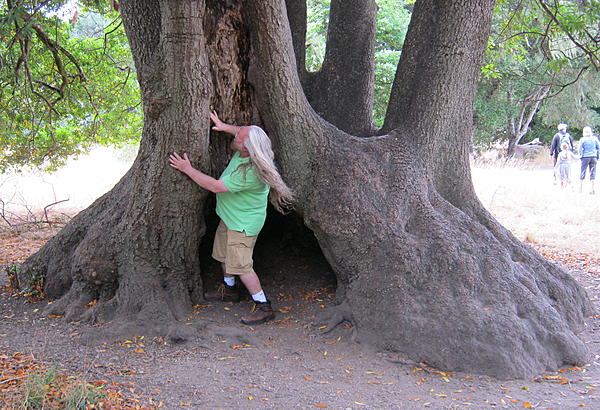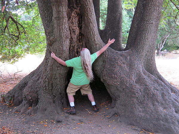 Here's a pic of me meeting a big tree while on a hike in Point Reyes National Seashore -- I can't remember right now whether it was Mark (Hairball) or Scott (Absalom) who took this pic of me with my camera; but in any case, I have no clue what I'm pretending to be doing...