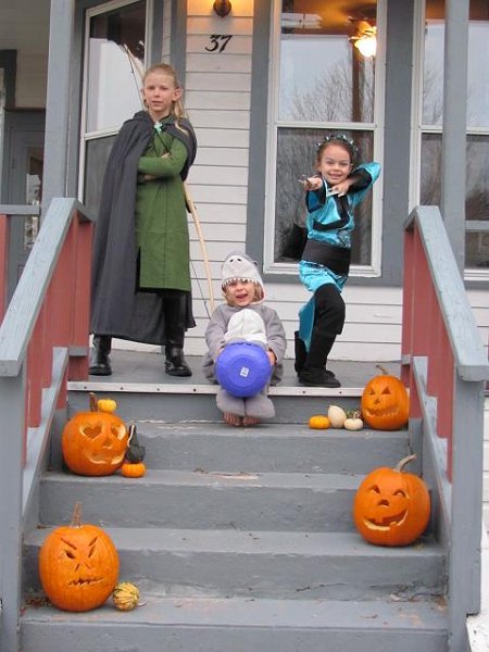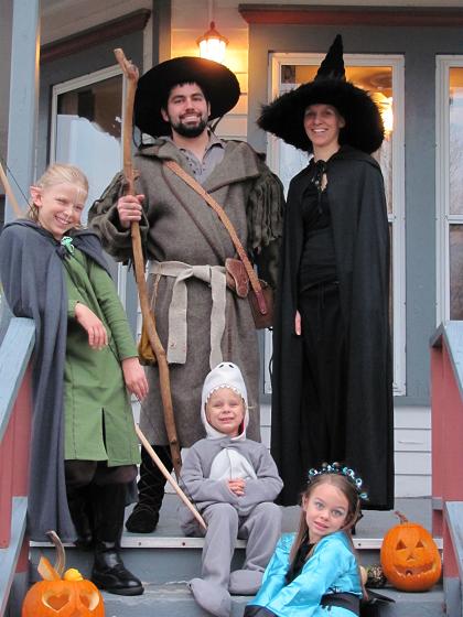 We celebrated our first Halloween (All Hallows Eve, Samhain, etc...) in our new town tonight, and a great time was had by all. Here's a picture of my family, minus the eldest daughter who, at 16, is apparently "too cool" to dress up anymore :P