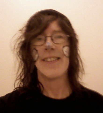 I had a facepaint for charity (Children in Need) at work yesterday. It was wearing off by the time this pic was taken. Shame really as I kinda like the tribal look - it somehow suits long hair perfectly!