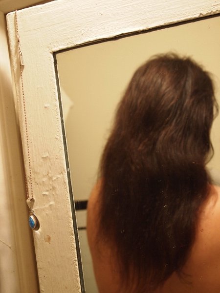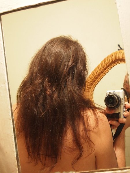 here is another pic of my hair brushed after henna---sometimes I wished my hair would stay like this brushed straight, but it doesn't last long, the waves kick in after a bit lol...I just have to live with with it--I don't think I would want to relax my hair or use a straightening iron,I heard to many horror stories....Guys do you think I should get a straight cut on my ends? Keep in mind my hair is wavy, so I don't thing it will stay...