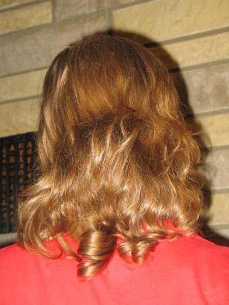 Yeah, it all pretty much fits in a hair tie pretty good now :D ! How does it look :o ? Well, I'm a little disappointed... it's not as springy and as full as the photo from last month looked. It kind'a clumps together and gets a bit tangled with itself, but I guess that's to be expected :o (?). I'll try to get a photo when my wife is not here at home (we're both taking time off from work because of the accident).....