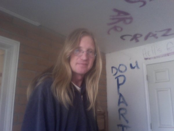 Cool! Hair too gorgeous to cover:)Can't help but notice the interesting graffiti on the walls and ceiling.lol. Cheers