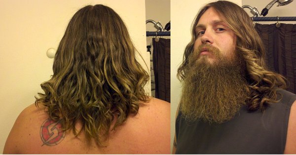 Friggin' awesome, Dude! The hair w/the curls and the burly beard are Bitchin'!! No goin' back let it all grow, beard and hair, as long as humanly possible.