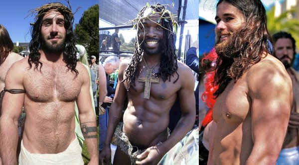 Some of the contestants have long hair, but some of them are sporting thrift store wigs under their crowns of thorns. The emphasis seems to be on the hunky rather than the Jesus.