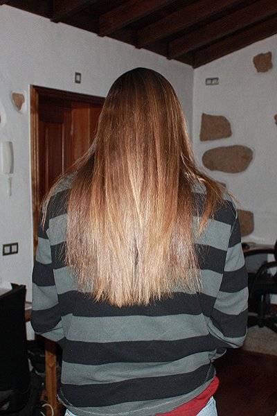 Look at the longest part of my hair, this hair starts at the nape of my neck. Then Look at the hair that falls from my crown, this falls 20cm (7 inches) shorter.