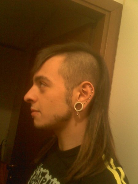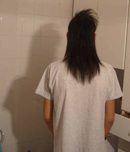 2 years ago I shaved all my hair off to a 5mm buzzcut and started to grow it out again. After 1 year my hair came out as an Emo-like hairstyle wich I sported until June 2011. Then I decided to go for a new, particoular cut...since then I've been keeping my sides shaved, a fringe and some spikes in the middle and kept growing the back of my hair. January 8th 2012 marked my 2nd year without trims in the back, except for a couple of thinnings I had last year (wich I kinda regretted since it took me several months to gain thickness back)