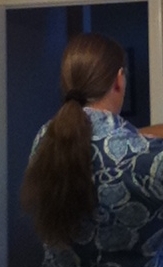 Here's how my ponytail looks after I blowdry my hair. I don't like it at all and wish I could find a product that would tame it, or a blowdrying technique that would avoid this wild, bushy, staticky (I say that's a word) look and feel. I try to avoid blowdrying it but sometimes I can't go out with my hair still wet and I don't have time for the normal "air dry."
