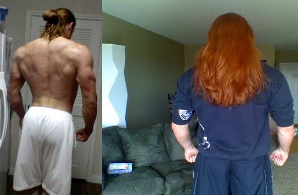 Attached is a photo of one of our former community members, "Red Sage," who is but one of many outstanding examples of men with long hair and unquestionably masculine physiques, achieved through good nutrition and tons of hard work, including a great deal of anaerobic exercise.