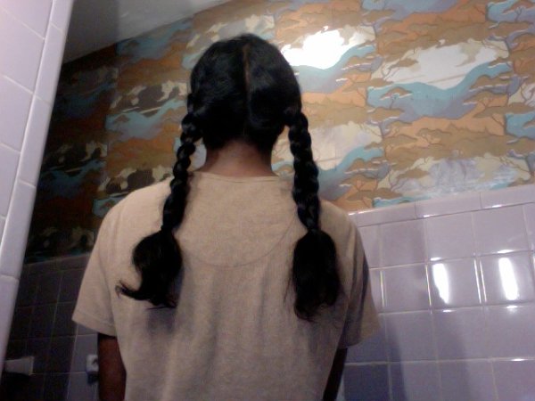 after three years of growth. I tried braiding my hair in pigtails. when i went out, the woman stopped and said that she love my hair. It was great yet funny. just thought of posting some pictures.