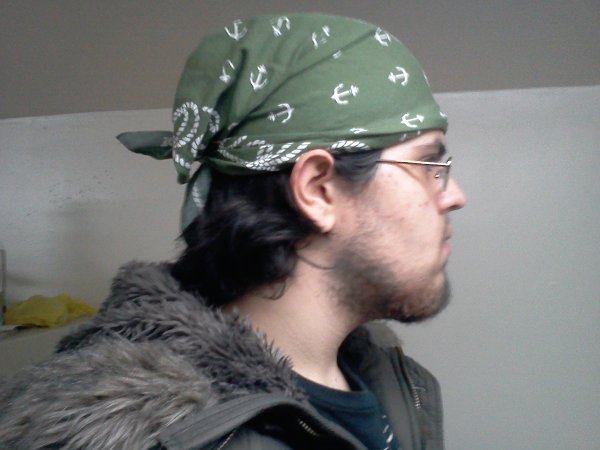 Hey there, I'm just 2 weeks short of my 8 month update, but I wanted to share a side shot of me wearing a bandanna during the more awkward phase. I think I pull it off pretty well :)