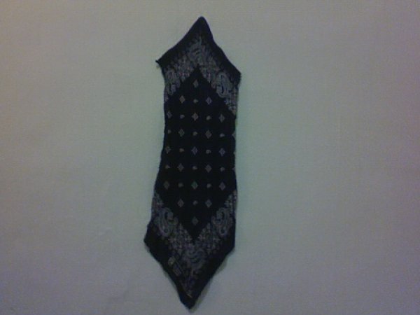 Here's how I cut the bandanna. It could have been done neater, but the edges get folded under anyway. This ones a bit out of shape from being worn many times. (I better wash it!!)