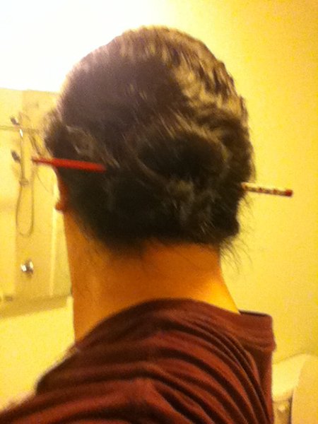I put my hair up this way all the time, usually with a pen or pencil or both