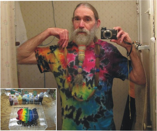 Your hair looks good, Damon. My beard is white and my hair is sort of reddish blond. I just could not resist dragging out my tiedye kit and add a whole lot more additional colours. Enjoy.